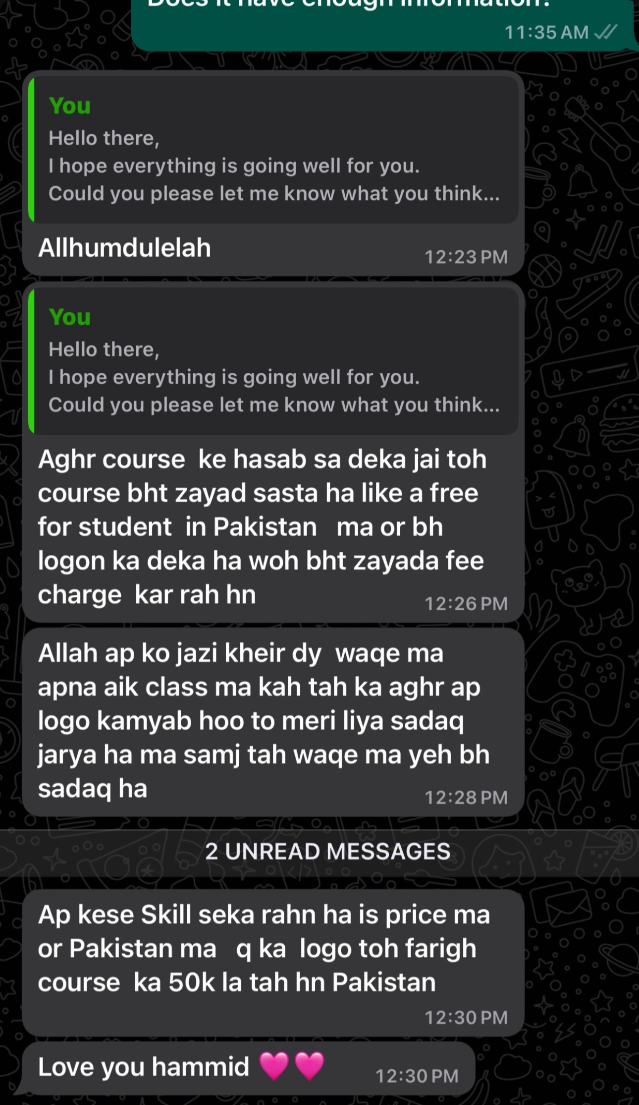 Submit the details below in the webform and send the payment Screenshot with a ‘done’ message on our WhatsApp 03147371717, you will get access to the student portal in the next 24 hours where all the videos are uploaded.